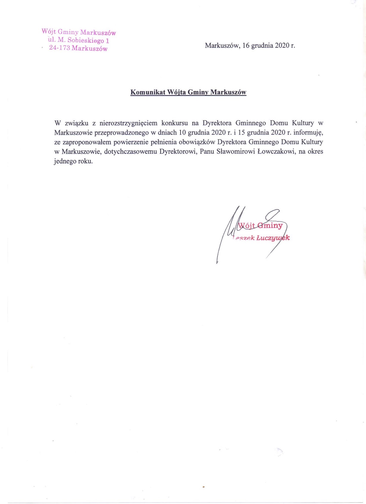 Komunikat Wójta Gminy Markuszów(obraz,120.39kB)