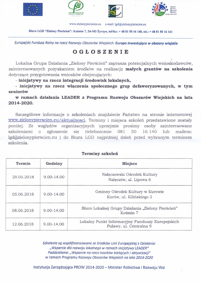 Nabór Zgłoszeń lokalizacji będzie trwał od dnia 21.05.2018 r. do dnia 08.06.2018 r.