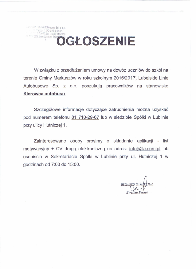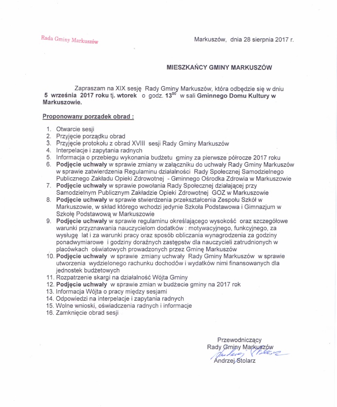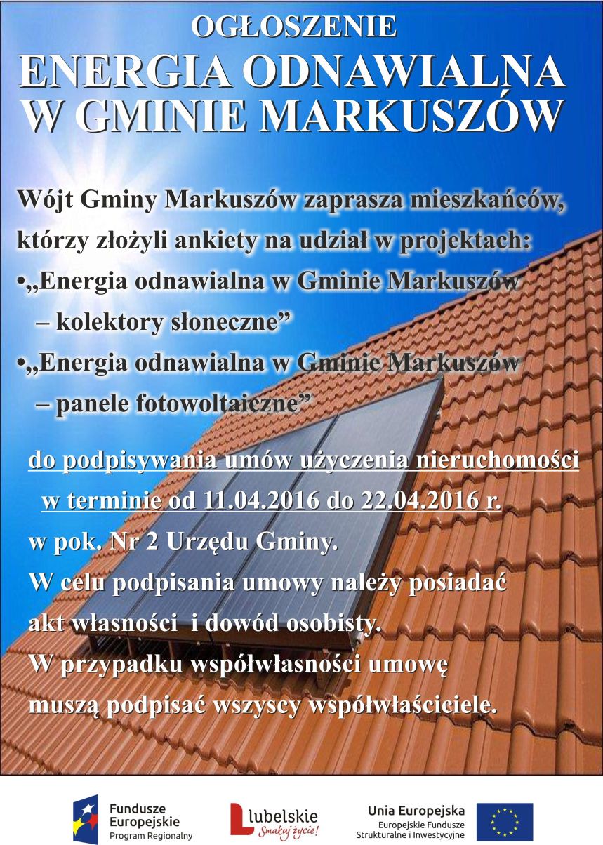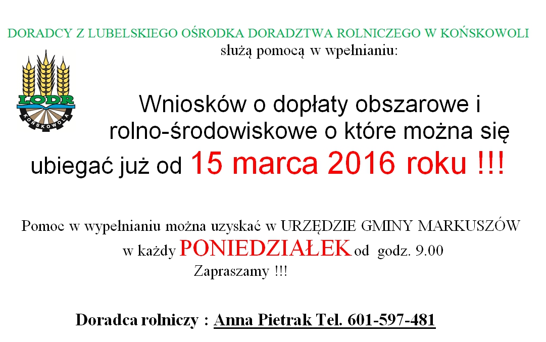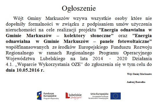 Wypełnione i skompletowane dokumenty składamy do dnia 29 marca 2016 r. w Urzędzie Gminy Markuszów.