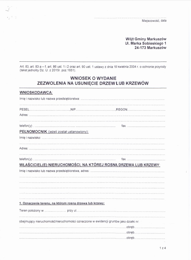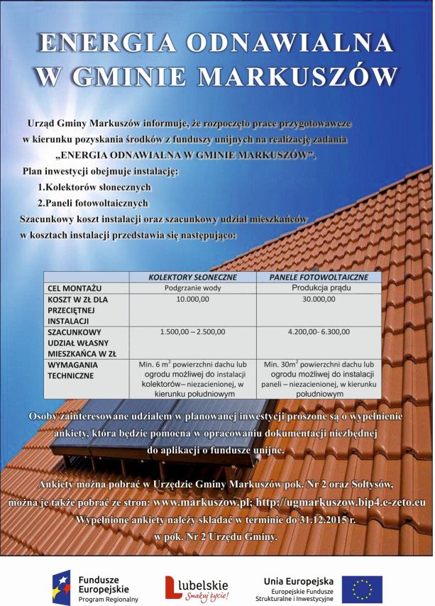 Wnioski do pobrania w Urzędzie Gminy Markuszów pok. nr 4, tel. 81 8818072.