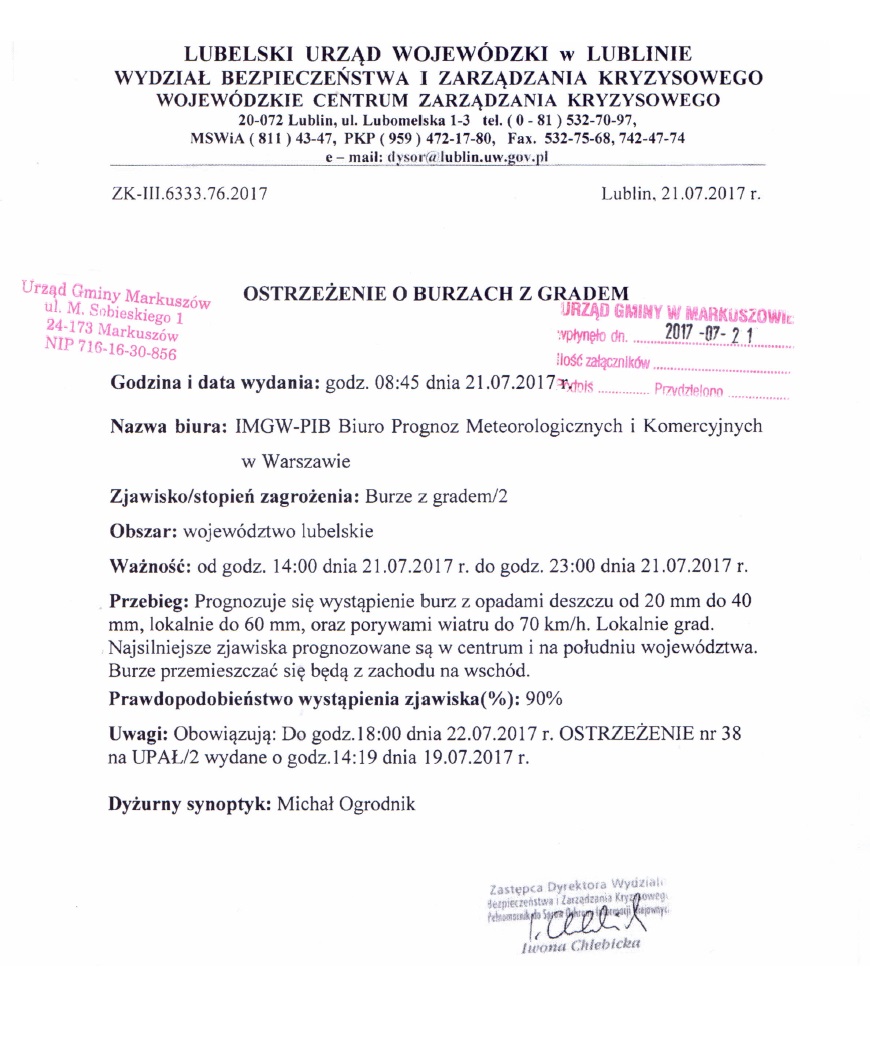 OSTRZEŻENIE O BURZACH Z GRADEM