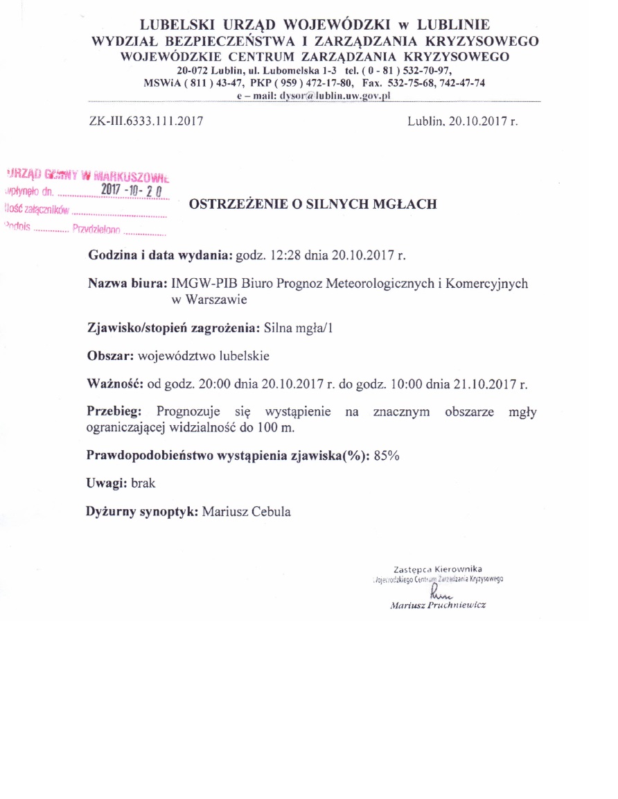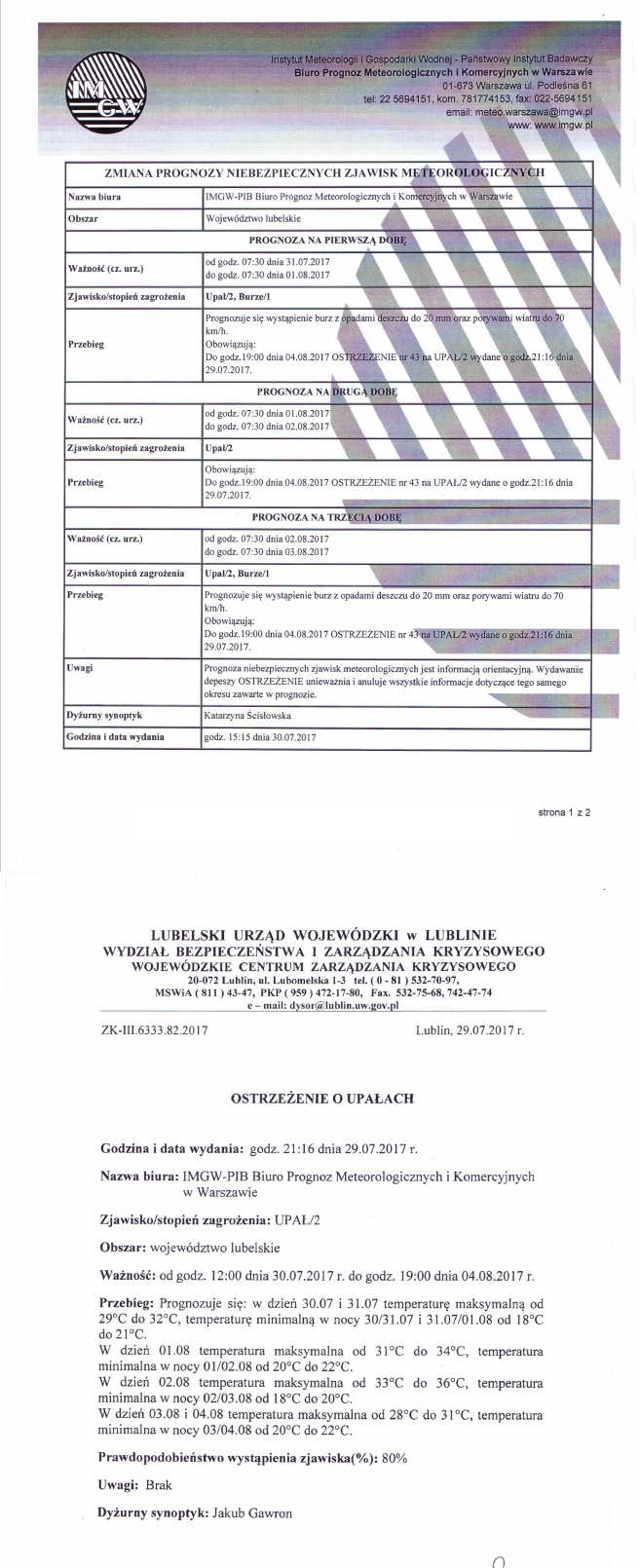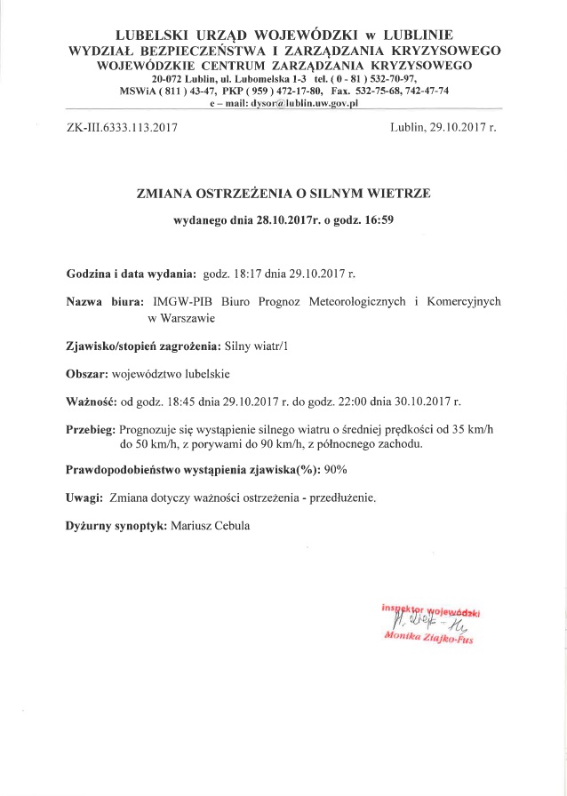Uwagi: Przewiduje się kontynuowanie ostrzeżenia w godzinach popołudniowych.