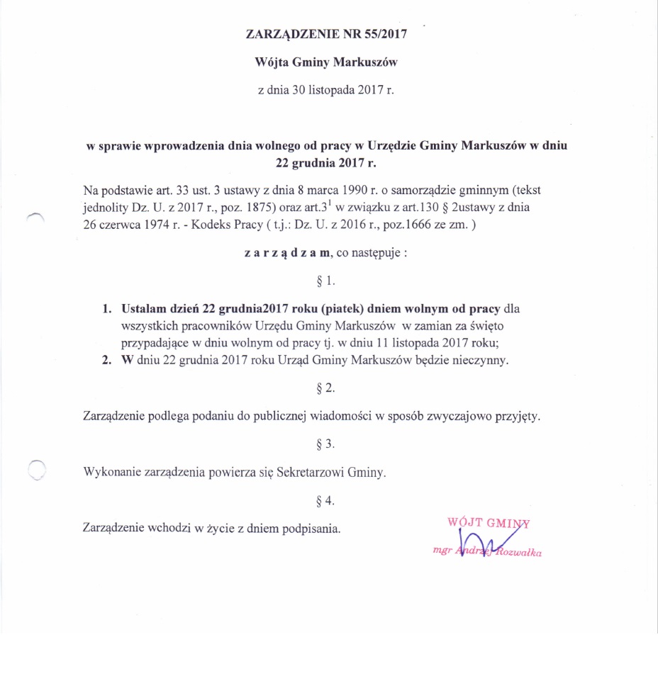 Wypełnione i skompletowane dokumenty składamy w Urzędzie Gminy Markuszów.